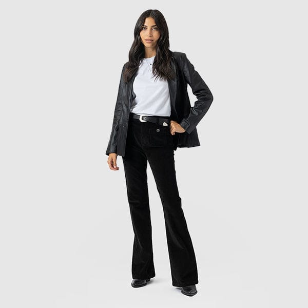 Taking the classic denim jean and shaping it to a flared leg with a corduroy finish, we’ve created a vintage aesthetic that’s perfect for work or weekends. The Bowie jeans have a flattering fit that sits high on the waist with two patch pockets at the hips. Each style is designed in our London studios and handmade in Europe to ensure the highest quality right down to the finest branded button details. Wear yours with our Austen Tee and a pair of trainers for a chic everyday look.